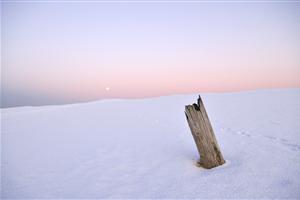 Avondlicht Hoge Veluwe in de winter met maan in de achtergrond